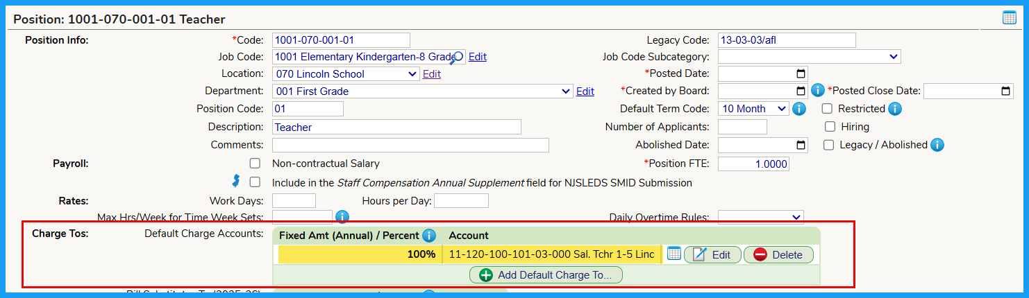 To utilize this option the District MUST have a default charge to set for the individuals respective Position Record. If the District is planning on utilizing this option, you can submit a FreshDersk Help Ticket help ticket requesting the Help Desk mass-set your blank default charge tos for all positions to the current position tracking records. We highly recommend all district request this task. This task can only be run once and the District must manually update the default charge tos if they change in the future.