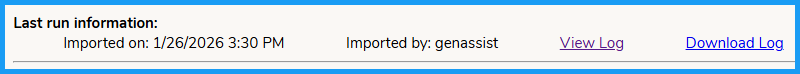 After your file is uploaded, you will see the following line appear. Click on the View Log hyperlink to view the log that will tell you if your upload was successful or not. You can also download the log by clicking the Download Log hyperlink.