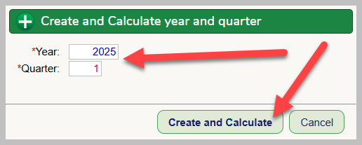 3. To create the data file, click the Create and Calculate data year and quarter button.