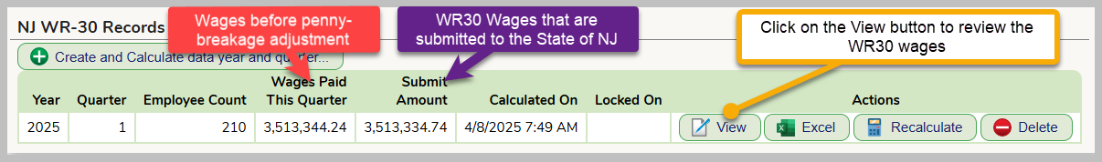 4. You can review and analyze the WR30 wages by utilizing the View button to view the data.