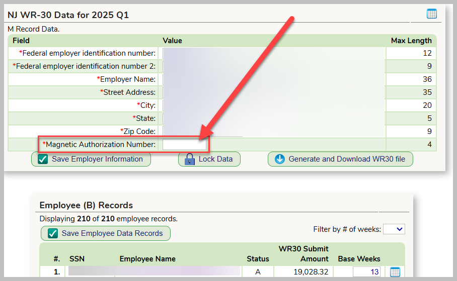 7. When your review is complete, lock the data and generate the upload file by clicking the Generate and Download WR30 file button. Ensure you Lock the Data after the file is downloaded.