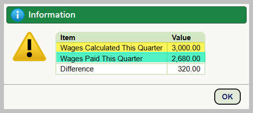 To assist you in reviewing these difference, you can click on the warning triangle for a popup detailing the wages: