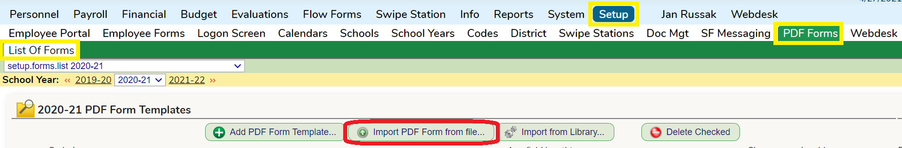 - Go to the Setup→PDF Forms screen and upload the PDF Form you had downloaded.