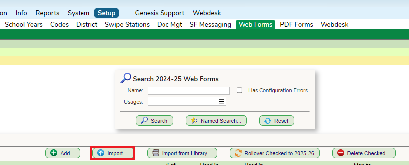 - Go to the Setup→Web Forms screen and upload the Web Form you had downloaded.