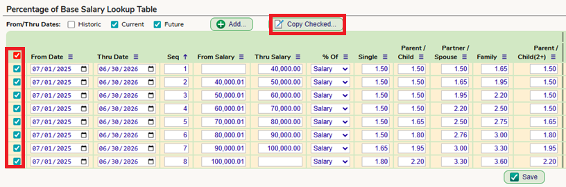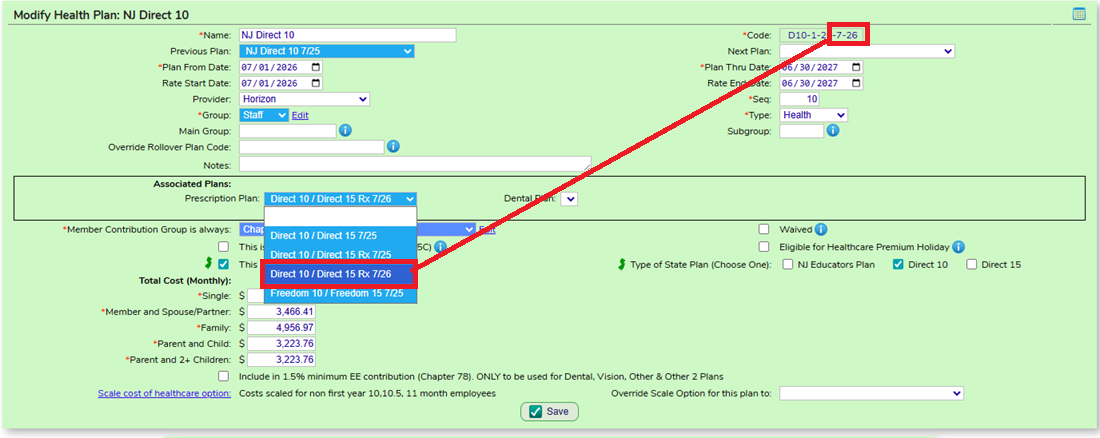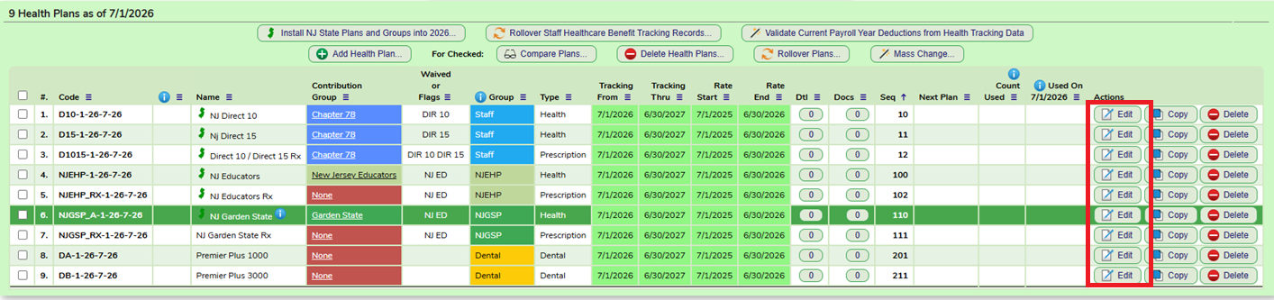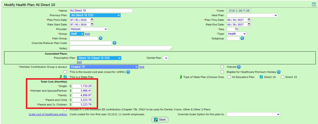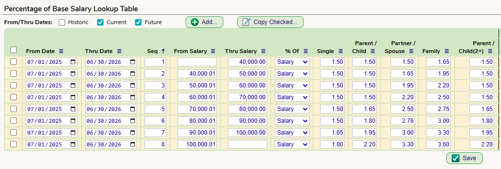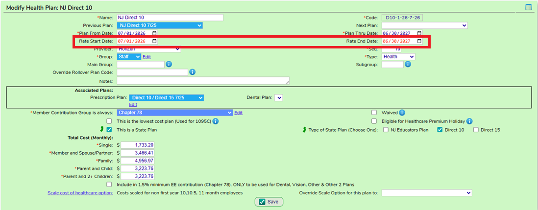 Then the District can update the percentages / flat monthly amounts / salary caps for the newly created records (in the new health plan period / year).