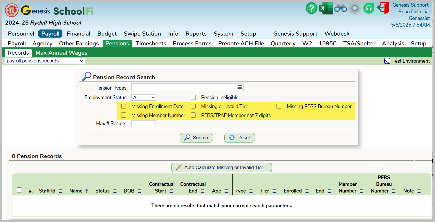 We recommend the district utilize the The Pension Records Tab to identify errors / issues with the snapshop. You can easily search for: