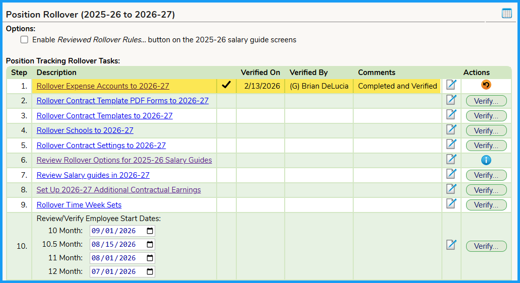 When complete, please ensure you sign off on the Positions >>> Rollover tab.