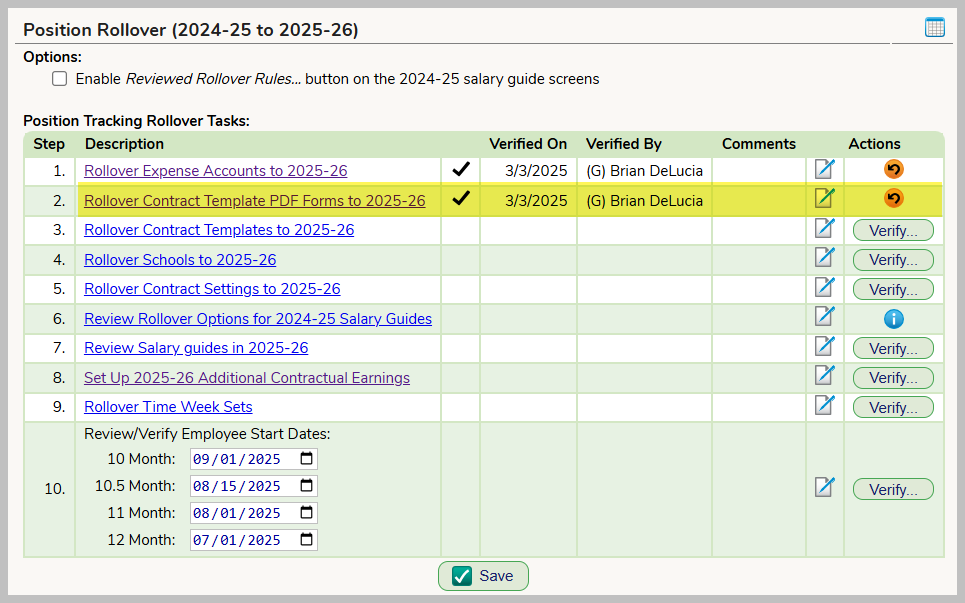 When complete, please ensure you sign off on the Positions >>> Rollover tab.