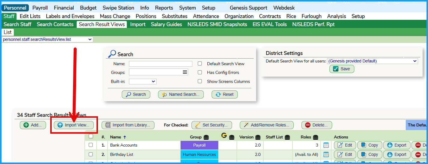 To import the Search Result view. navigate to the Search Results View tab and click on the Import View button.