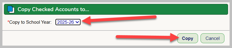 Select the Year that you want to copy the Account Groups to and click on the Copy button.