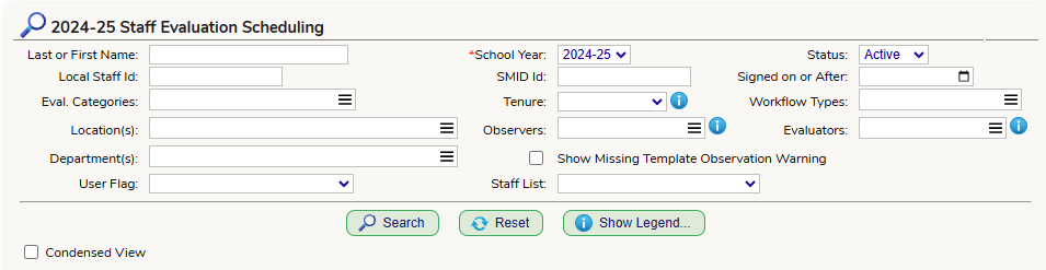 After you perform your search, the page will populate with staff members that fall under that search category. Based on the color legend at the top and the icon legend at the bottom, you can determine different information about each observation.