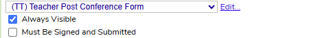Then you can choose which Web Form will be used during the Post conference by the staff member. Additionally, if the form is visible to them always (this removes the need for the admin to release the form to them to complete). Also the functionality of the form Must Be Signed and Submitted - if the staff member fails to submit the form, then the observation can not be signed until they do.