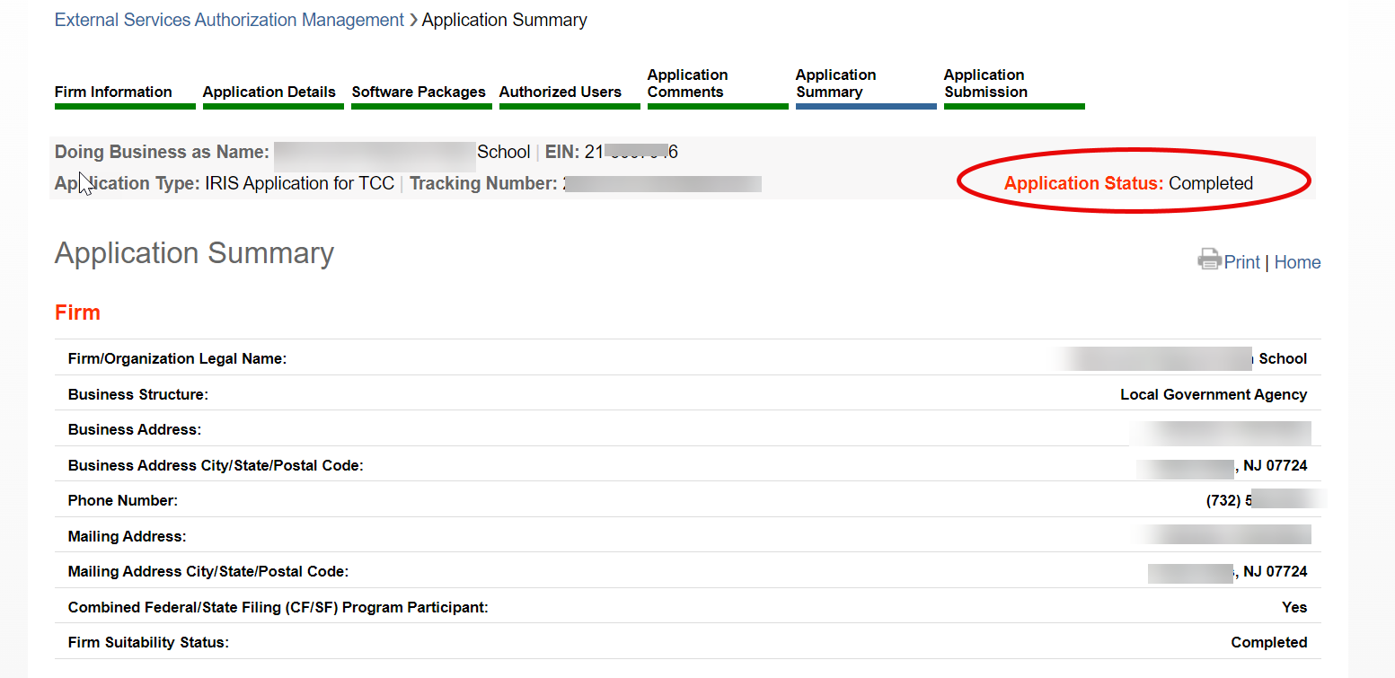 This shows your application status and the View/Edit button allows you to print the information. **BE SURE TO CHOOSE YES TO COMBINED FEDERAL FILING** so that one submission reports to both the IRS and the State