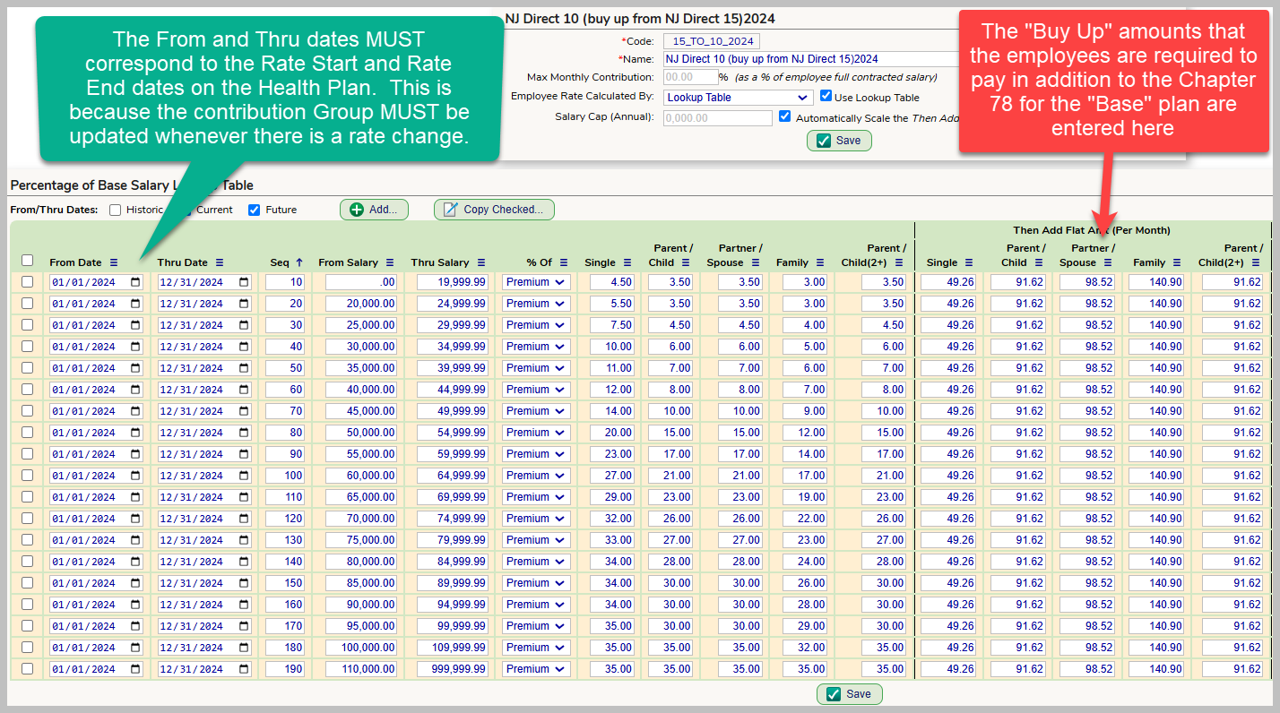 This article will detail setting up a health plan if a District wants to create a health plan that will be used by staff members when the employees contribute a percentage of premium that utilized Tier 4 of Chapter 78 and the employee has to "buy up" from the base plan (D15) to the enhanced plan (D10).