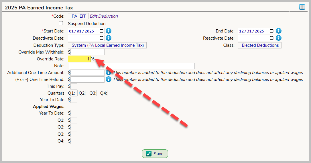 If the District want to create a deduction for the Pennsylvania Earned Income Tax (local), we recommend the following settings: