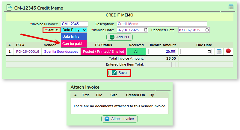 2. Change the Status to Can be Paid using the Status drop-down, and click Save.