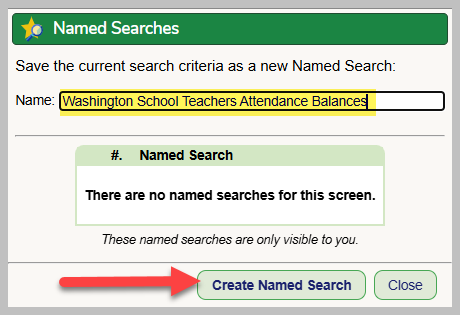 Enter the name of the custom Named Search and click on the Create Named Search button.
