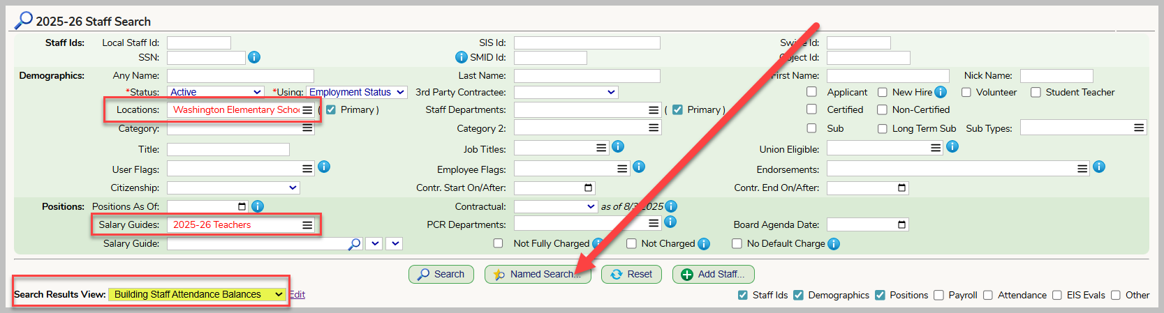 You have the option of utilizing the Named Search button to save the search parameters on the screen so they can be replicated for future reference. Named searches are save on the individual users account and can not be shared or accessed by other users.