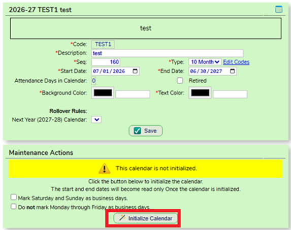 - Click on the “Initialize Calendar” button.