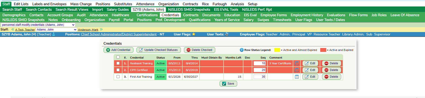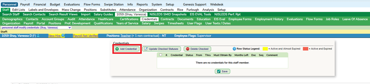 In SchoolFi every staff member has a Certifications and Credentials tab within their profile. It is recommended to use these screens to better track your staff's licenses/endorsements within these screens.