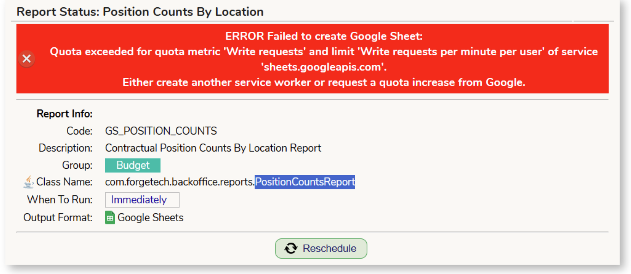 - A Google sheets option when running most reports that have an Excel option.